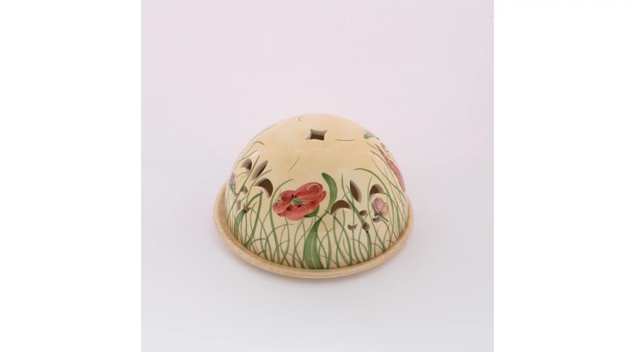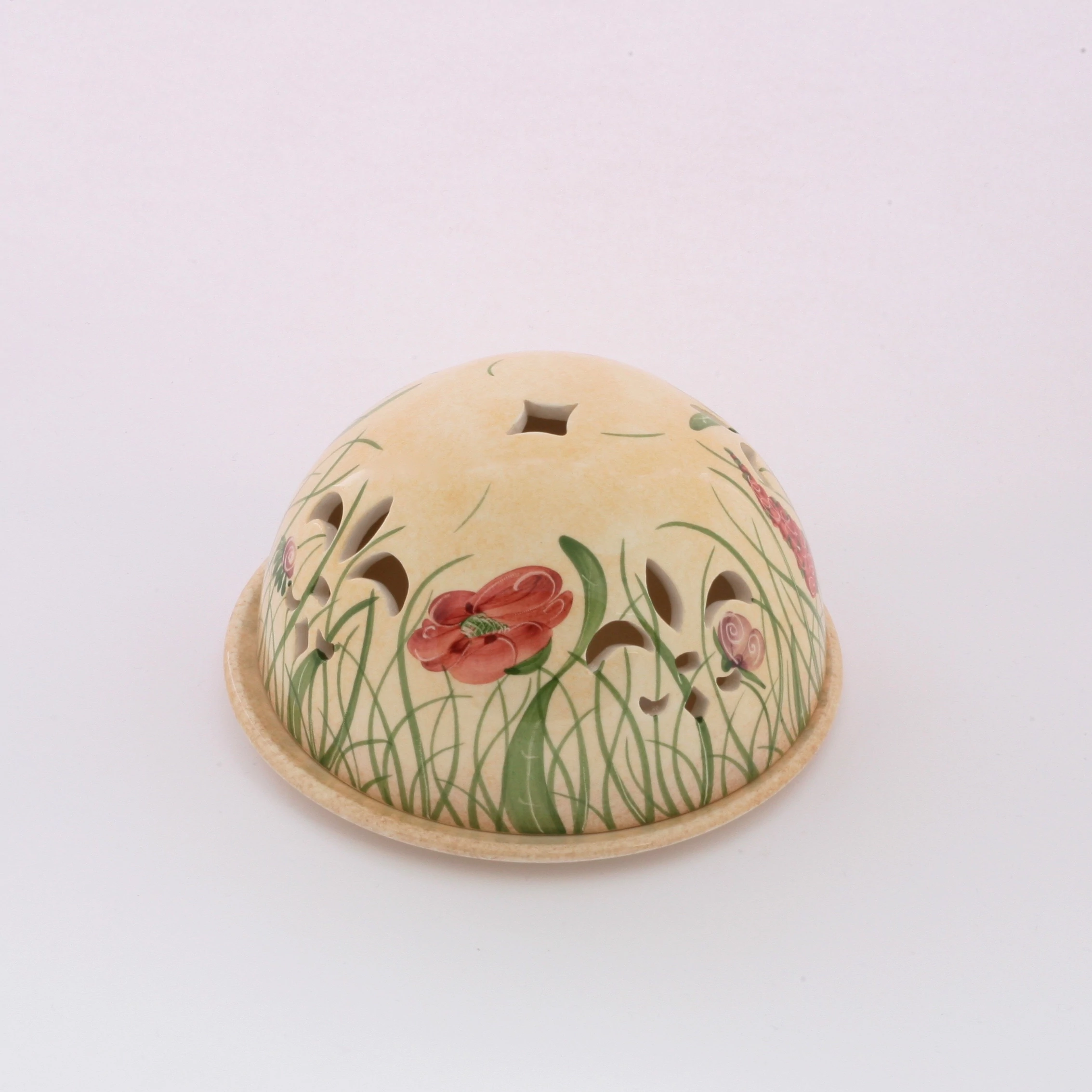 Félgömb alakú, két részből mécsestartó, liliomos kivágással. Átmérője 15cm, magassága 8 cm. Csak nálunk kapható, egyedi termék. |